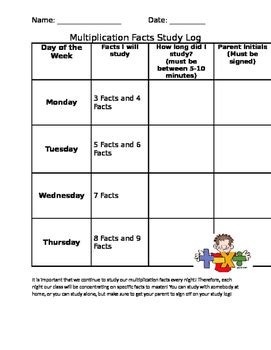 Read Online multiplication fact study log Paperback